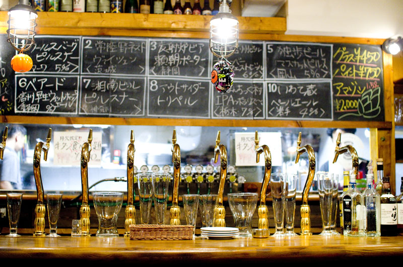 Japanese craft beers from around the country are dispensed from the eight taps here. Recent selections have included beers from Marca and Minoh breweries (Osaka), Kyoto Brewing, Shiga Kogen (Nagano)...