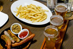 This popular beer bar serves very good sausages in enticing original varieties like mushroom-truffle, coriander-lemon, spinach-lotus root, and venison, with a mixed platter of five sausages priced at...