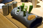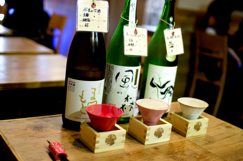 Aomori Prefecture in Northern Japan produces some very nice sake, and Ringo no Hana is a good place to try it out. Some twenty different types of local craft sake are served either in ichi-go flasks...