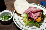 Modern, Japanese-inspired sandwiches prepared by a former sushi chef are served at this tiny take-out counter. Sushi-style tamagoyaki omelettes, steamed monkfish liver and home-cured lamb bacon are...