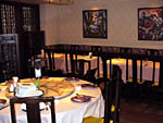 The two tiny dining rooms are rustic and cave-like, the stucco walls decorated with animal pelts and a boar's head. The name means "the hunt", and the specialty is seasonal game (pheasant, boar,...