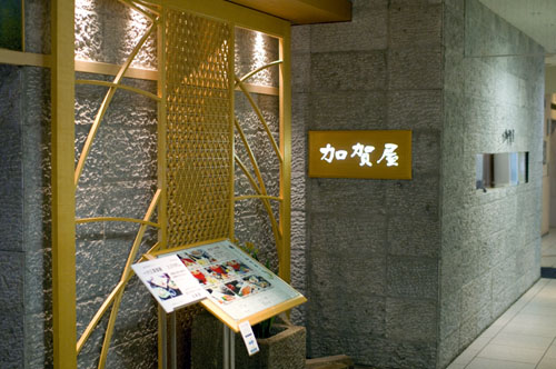 Kagaya serves Japanese food with an emphasis on the seafood and other specialties of Ishikawa Prefecture and Kanazawa on the Sea of Japan coast. Regular dinners start at Y3000, with kaiseki service from Y6000.