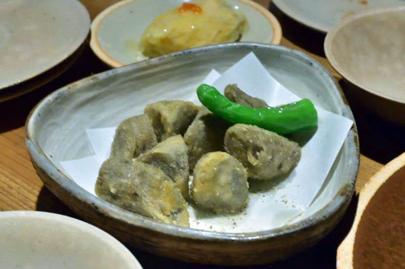 Gorgonzola-maitake mushroom spring rolls are filled with plump mushrooms in a crunchy fried shell, set off by a gorgonzola sauce that's assertive without being overpowering. Renkon manju (lotus-root dumplings) are a cold-weather comfort food, deep-fried burdock root and chicken tsukune are sure-fire crowd pleasers, and the salad with hakusai and smoked scallops raises the bar for izakaya salads.