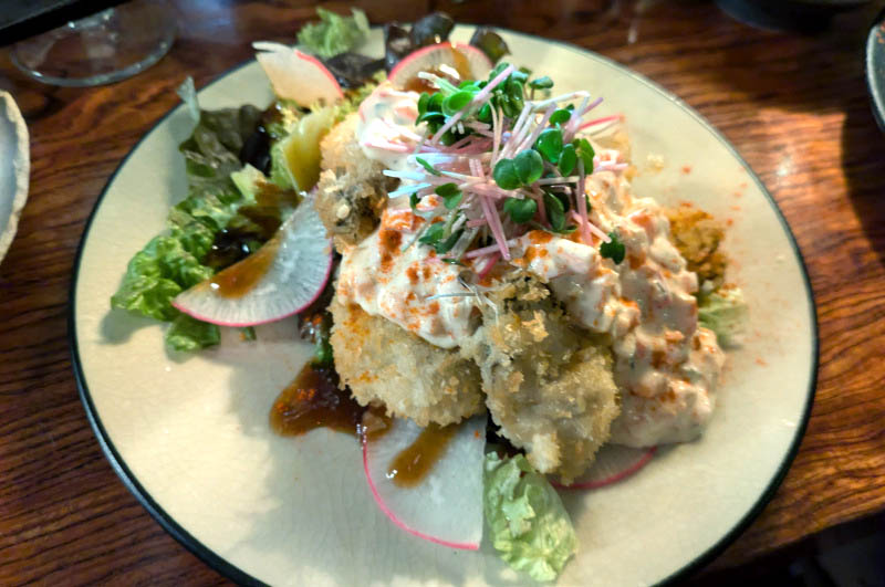 One standout, though it's not especially smoky, is the Shkmeruli - a fantastic Georgian stewed chicken in garlic cream sauce. Fried oysters are livened up by an excellent homemade tartar sauce, and the delightfully fatty bacon is an essential order. A plate of "mixed greens" turns out to be big enough for a group, and provides a nice contrast to all the meat and seafood dishes.