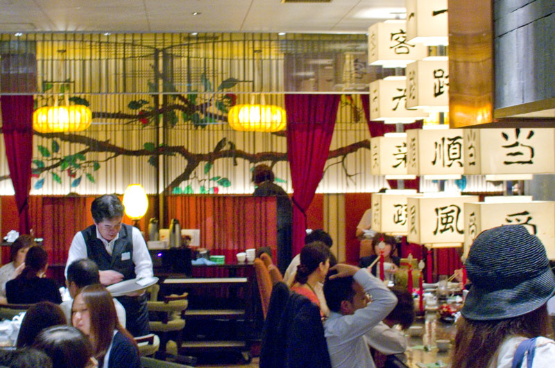 This branch of a famous Kobe Chinatown shop sports a charming "modern retro" decor with an unusual birdcage motif. The menu is wide-ranging, from inexpensive noodles and dim sum to lavish Cantonese banquet fare; full-course dinners range Y3500-6000.