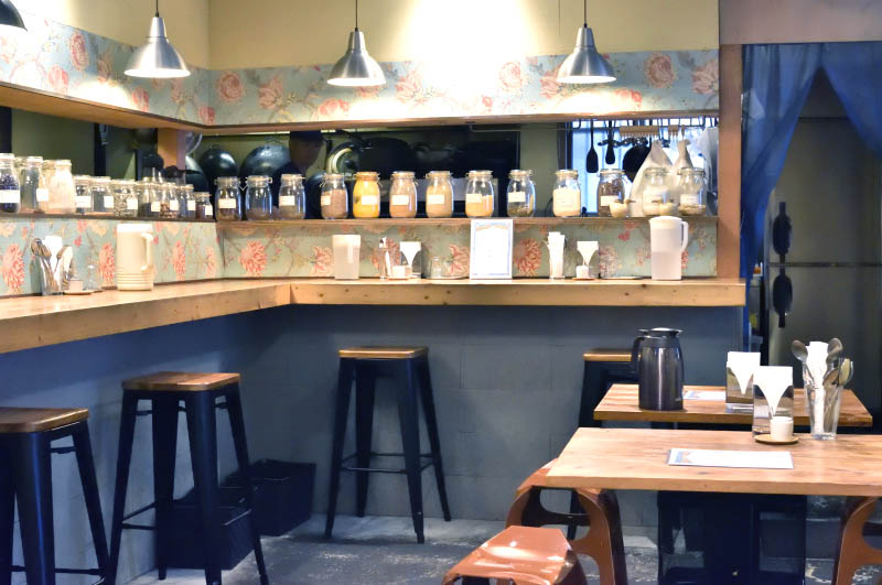 One look at the dozens of colorful jars lining the counter at Spice Curry Maruse will convince you that they take the "spice" part of their name seriously. Occupying the ground floor of a quaint old wooden house, the shop is a relaxed, laid-back setting in which to enjoy their superb original curries.
