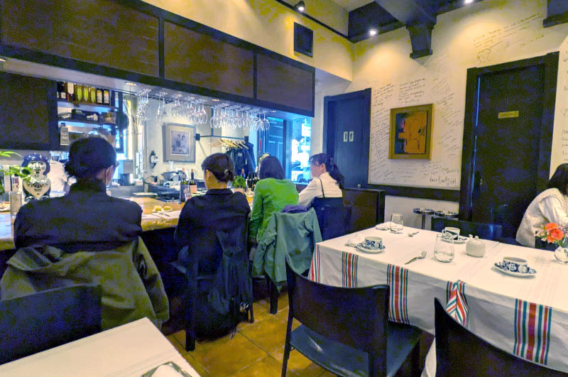 The dining room is casually elegant, with ample counter space for solo diners and walk-ins. The open kitchen makes the most use of the space, and gives a light, airy feel to the dining room. Service is cordial and professional.