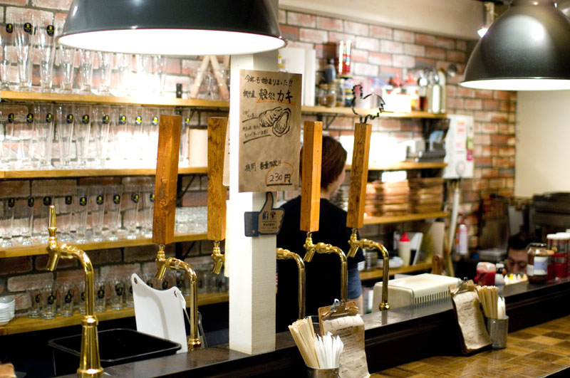 Craft beers from Rokko brewery are served with yakitori at this small bar. There are generally five or six craft beers on draft (along with three macros), served in four different sizes and priced at Y920 for around a UK pint and Y480 for a small glass. They also have tasting sets of four Rokko beers for Y1400.