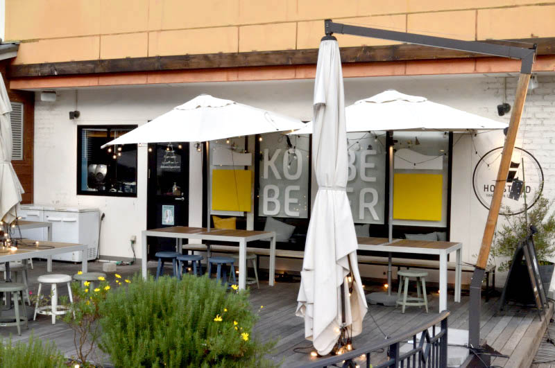 This big second branch of Hop Stand yakitori restaurant has forty terrace seats and another forty inside. They serve several different craft beers from Rokko brewery plus a collection of fruit-infused beer cocktails. Like the original branch, the kitchen specializes in grilled chicken made with Awajidori heirloom-breed chicken, supplemented by other beer-friendly fare like fried chicken, roast beef and hams.