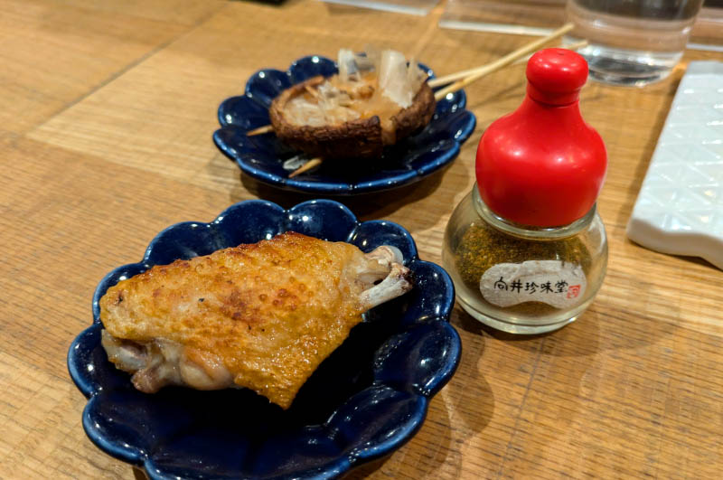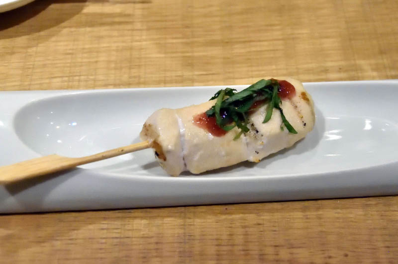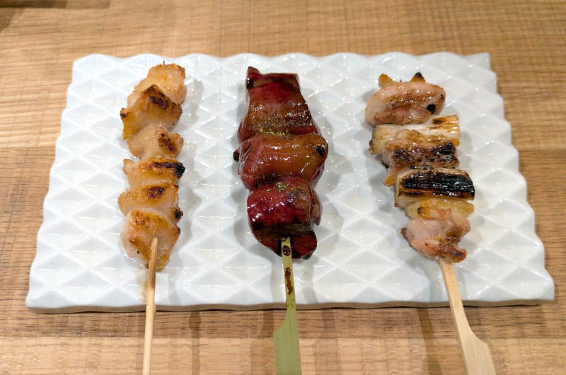 You can peruse the paper-based Japanese menu while you order from the online (partially English) menu, accessible from your phone. There's an illustrated chart explaining the various cuts of chicken that they serve, which is handy because several of the names are different from those used in Tokyo. For easier ordering there are also a few different prix-fixe options, which include both skewers and small side dishes.