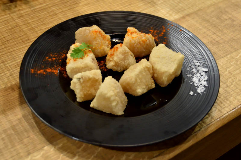 Some highlights here are the very tender ume-shiso chicken breast; plump chunks of chicken liver in sauce; and small but intensely flavored wings. Caramelized liver pate is prepared with a blowtorch, resulting in a thick, crunchy glazed layer like creme brulee, with a subtly sweet flavor. Deep-fried daikon radish makes a scrumptious salty snack to go with drinks, and might make you wonder why daikon isn't prepared this way more often.