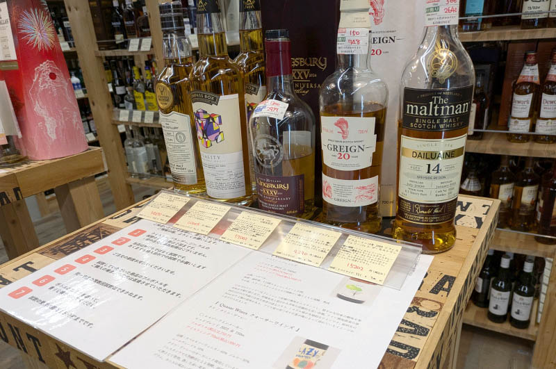 This well-stocked liquor shop offers some fairly premium whiskies for tasting, with servings starting at 10ml. They've also got two fridges full of mostly canned craft beers, one for domestic breweries and one for imports. You can pay an extra Y200 to drink your beer here amongst the whisky tasters, or get your beers to go.