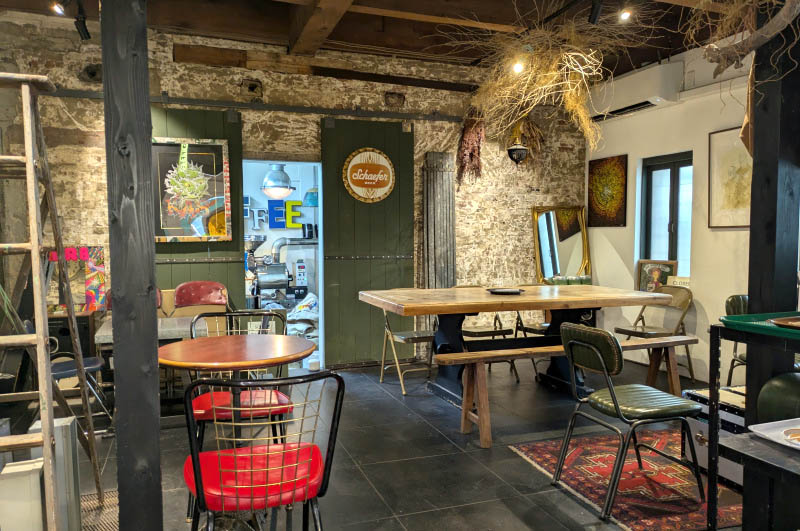 The charmingly furnished cafe area in back is quite comfortable, though depending on where you sit it can be noisy when there are multiple sources of music playing at the same time. There are also a couple of seats out in front of the shop.