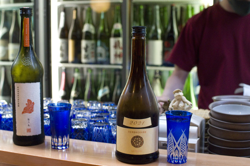 The compact food menu is relatively simple, with a good selection of local seafood and sake-friendly dishes like cucumbers with miso paste, stuffed lotus root and grilled duck. Everything is well prepared, artfully presented, and well-suited to sake.