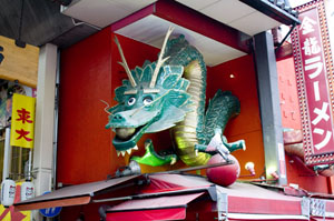 This all-night Dotonbori landmark with the gigantic dragon on top serves a very popular Kyushu-style tonkotsu (pork broth) ramen. Help yourself to unlimited garlic, kimchi and pickles from the toppings station. There are a few more branches in the neighborhood in case this one is full....