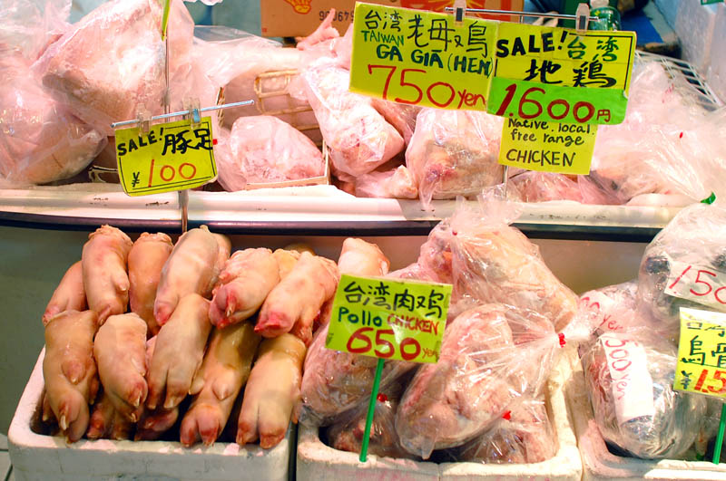 The market building is located at the entrance to the very lively Ameyokocho shopping street, which is lined with shops selling discount clothing and other goods.