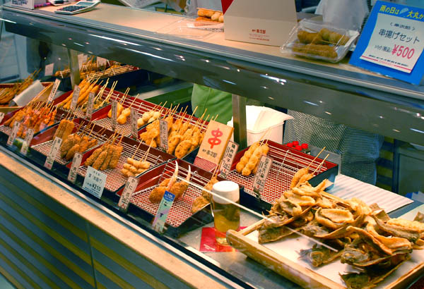 They're located right next to the western end of the traditional outdoor Nishiki Market, and visiting one after the other provides an interesting study in contrasts.