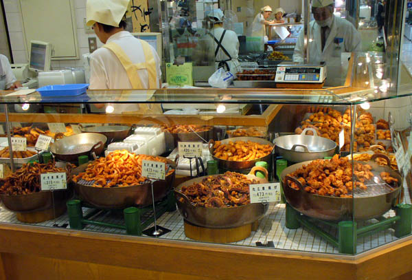 The fry counter: deep-fried octopus tentacles, squid, shrimp and chicken to take out