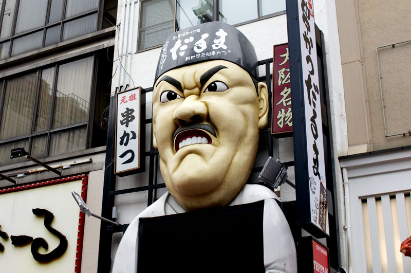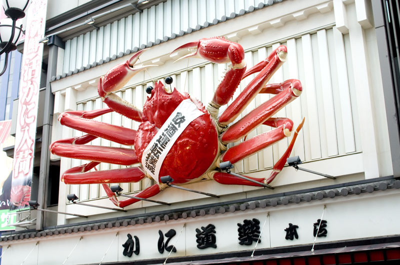 After an evening spent exploring the sake pubs of Osaka's Dotonbori neighborhood, the unexpected sight of a 12-foot-high mechanical crab with thrashing claws and swiveling eyestalks can be an unsettling experience. Here are some other sobering sights from the streets of Dotonbori.