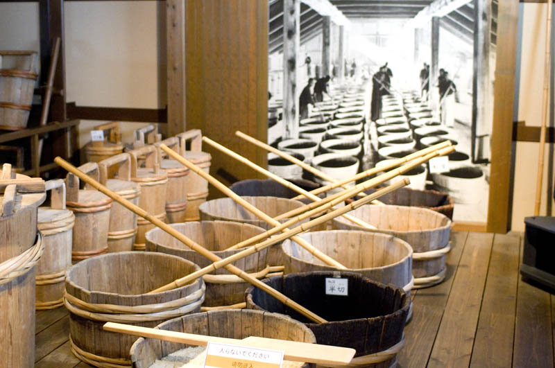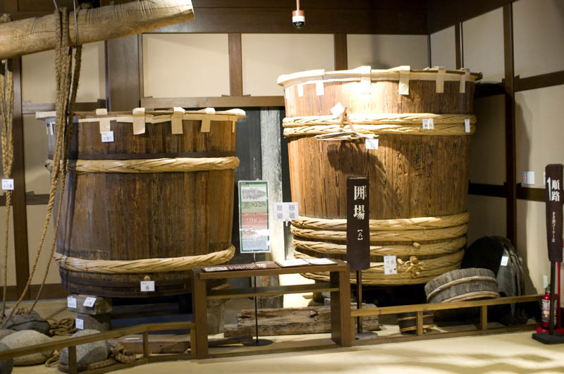 The large main display room here contains everything from traditional wooden tools and equipment to giant barrels, cauldrons and machinery. Upstairs there's a small space where you can watch a video explaining the sake-making process (in Japanese). Here you'll also find a big collection of sake cups and vessels from around Japan, and you can compare the distinctive ceramic styles from Japan's various regions.