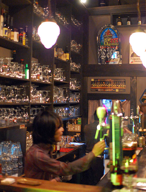 A comfortably cozy little hideaway bar with multi-level seating nooks. Pick your own bottle from the big selection of Belgian and German brews in the refrigerator case. The food menu is limited to light snacks.