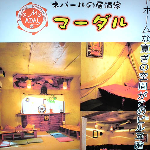 The Tokyo branch of a Kyoto restaurant serving Nepalese, Tibetan and Indian food. In spite of their location in a run-down office building, the dining room is cheerfully exotic, with decorative carpets, wall murals and seating cushions adding to the atmosphere. The food is a slightly fancier version of home cooking. Lunch from Y800. They also have a bar area, open to 11pm. No lunch on weekends.