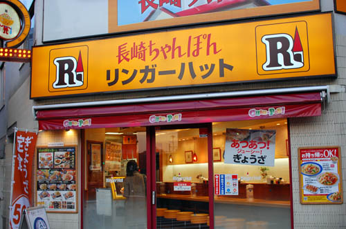 This budget chain serves two kinds of Nagasaki-style noodles - sara-udon (crisp fried ramen noodles topped with vegetables, pork and seafood in a thick sauce), and Nagasaki champon (similar to the above but in a pork-based soup). Side dishes include gyoza dumplings (regular, cheese, and mentaiko-cheese) and fried rice. Open Mondays 7am-midnight; Tuesday-Friday 24 hrs; Sat midnight-5am; Sun 11am-10pm.