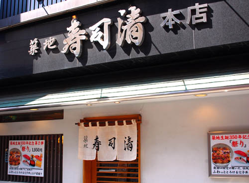 This is the small, main branch of a famous sushi-shop chain, located inside the former market and boasting the freshest fish selection. Their very nice standard sushi assortment is around Y3,900.