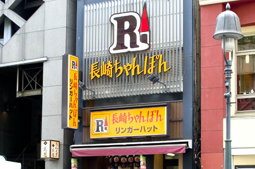 This budget chain serves two kinds of Nagasaki-style noodles - sara-udon (crisp fried ramen noodles topped with vegetables, pork and seafood in a thick sauce), and Nagasaki champon (similar to the above but in a pork-based soup). Side dishes include gyoza dumplings (regular, cheese, and mentaiko-cheese) and fried rice.
