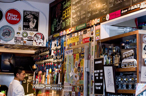 The twenty taps here dispense a number of craft ciders (five during our most recent visit) as well as beers, so you can opt for an all-cider tasting flight or a mix of ciders and beers. Prices for pints are about average for Tokyo craft beers, but note that half-pints are somewhat more than half the price of a pint.