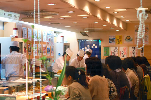 This is a branch of Midori's trail-blazing sushi shop in Umegaoka, popular for their high-quality fish and reasonable prices (Y3,000-5,000 with a few drinks). There can be long lines at peak hours. Take-out is also available.