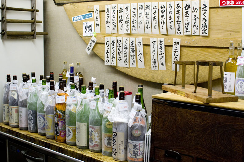 This long-established sake retailer runs a standing sake bar a few nights a week, and it's well worth a visit if you can catch them when they're open. The formidable collection of sake is served in small, tasting-size glasses so you can try more than one, and prices start at around Y350. There's also a small menu of very light snacks to go with your drinks.