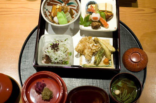If it's your first lunchtime visit you might want to spring for the deluxe bento, which you should order in advance when you make your reservation. During a mid-summer visit our meal started with chawan-mushi (savory egg custard) livened up by a salty ume plum and chunks of sweet, tender grilled anago eel - a nice warm-weather appetite-starter.