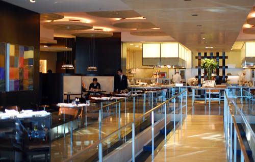 The Grand Hyatt's spacious brasserie restaurant has a dramatic open kitchen and outdoor terrace seating. The popular weekend brunch (Y6300+10%) is served from 11:30am-3pm, and comes with a glass of champagne, a choice of main course and a big buffet with eggs cooked to order, French toast, smoked salmon, Parma ham and numerous salads and desserts. The main course options include substantial fare like Australian beef fillet; roast duck breast with duck confit; roast guineau fowl and sauteed scallops.