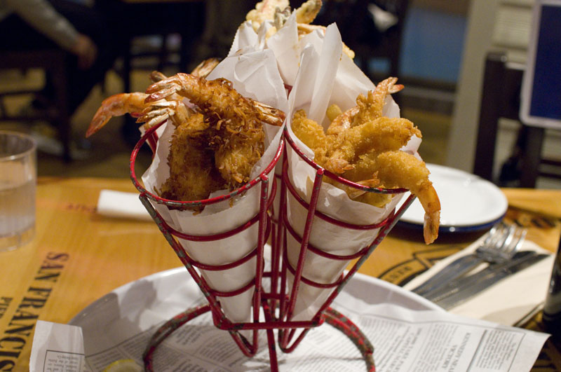 The Shrimper's Heaven platter is an efficient way to sample the restaurant's main specialty. Four varieties of grilled and fried shrimp are accompanied by three different dipping sauces, all of them quite delectable. "Dixie-style" ribs - the other specialty of the house - are tender, meaty and flavorful, served with an excellent tangy cole slaw in addition to well-executed fries.