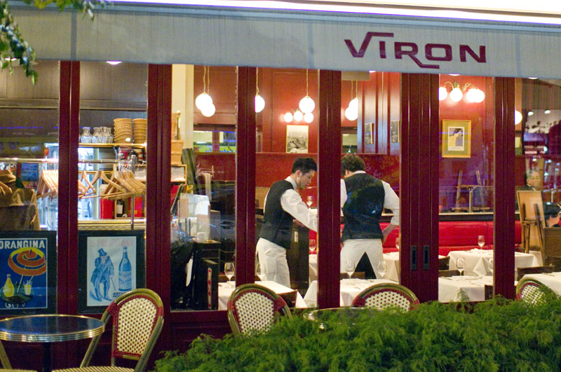 Viron is a combination bakery and casual brasserie, with a small standup bar in one corner where they serve ten wines by the glass. The bar is an excellent place to meet up before dining nearby.