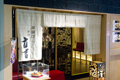 You'll find high-quality skewered morsels that are deep-fried with a light touch here, and ordering is simple - just tell them when to stop. (Don't worry, you can specify in advance any ingredients you can't eat.) Some highlights are the crunchy prawns, the Berkshire pork and the large asparagus spears, and Momo no Shizuku sake from Kyoto stands up to the fried flavors. Budget around Y4000-4500 for a filling meal with drinks.