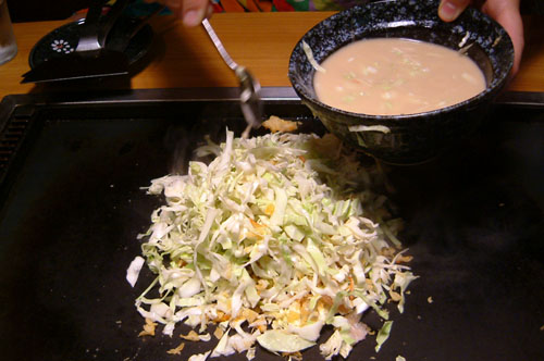 Located in the middle of Tsukushima's bustling monjayaki district, Oshio is a comfortable place to try out this local Tokyo version of okonomiyaki. The large menu includes dozens of variations such as spinach-tomato, spicy Chinese tofu, and mentaiko (cod roe) with cheese, as well as teppanyaki-grilled salmon and scallops. Monjayaki is Y1000-1300.