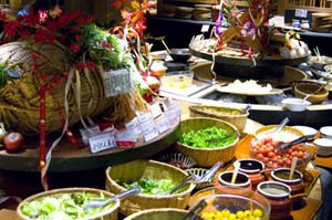 There's something self-indulgent and luxurious about an all-you-can-eat buffet, but a natural-foods buffet on the other hand seems positively virtuous - "Eat what you want - it's all good for you." The real fun of a buffet, though, is being able to try lots of different flavors without having to decide what to order, and the spread here offers ample variety.