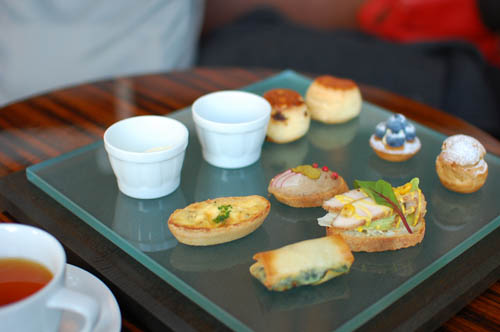 Those in search of something stronger than tea can find signature cocktails from Y1700 like the Tei-en, an unusual combination of vodka mixed with cucumber, shiso, kiwi, and cardamom seed, and the French 28, a pleasant champagne-based number spiked with Tanqueray and lime leaf, in addition to Bombay Sapphire martinis (Y2000). Tapas like zuwaigani crab cakes and marinated beef shins with cucumber are available after 5:30 (Y2000 for a set of three).