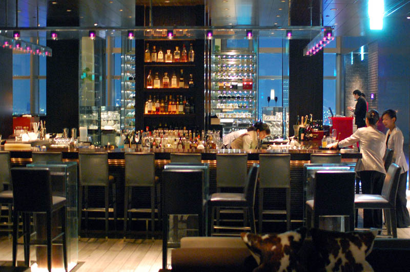 The extensive drinks menu - the wine list is its own separate tome - features original, mostly fruity, cocktails from Y1800. The Ancient City, a blend of tequila, Cointreau, and passion fruit, lacked impact but was greatly improved by an additional shot of tequila. There are flavored martinis to suit everyone's fancy, but the classic and dirty martinis (Y2100) can't be beat.