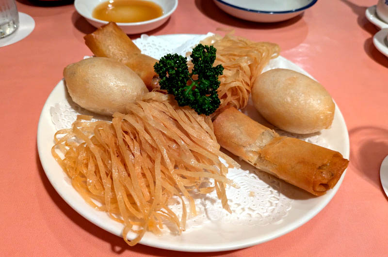 The yum cha (dim sum) set offers excellent value - it includes an assortment of steamed and fried dumplings; ebi chiri, or shrimp in a sweet and sour chili sauce; congee rice porridge; and dessert. They do standards very well here: the shrimp-filled ha gow dumplings are plump and springy, while the char siew bao roast pork buns are both savory and sticky-sweet.