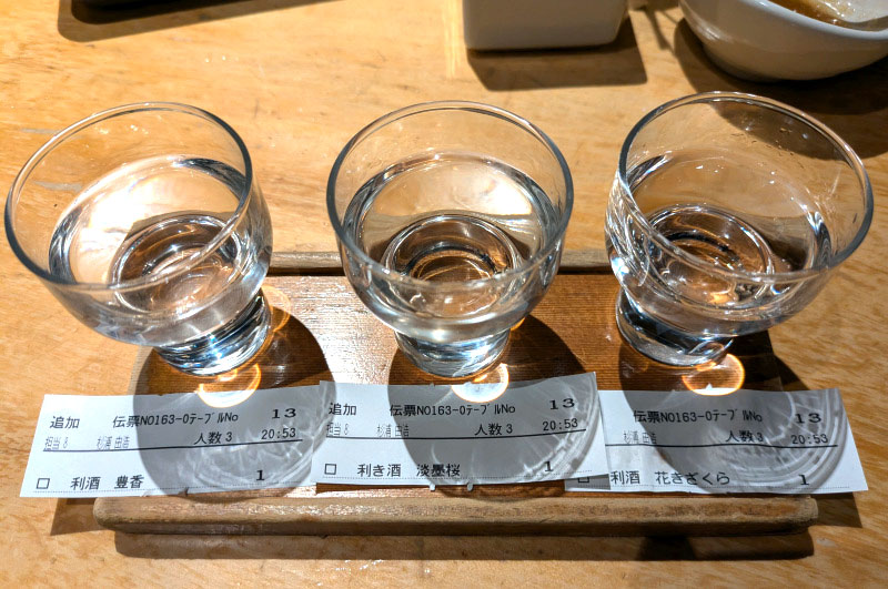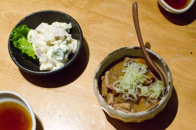 The kushiage is rustic in style, with a thick, rough layer of batter that's fried to a satisfyingly crunchy consistency. Some recommendations include skewers of curry-flavored pork belly (buta bara), deep-fried cheese, chicken breast with ume (plum), shrimp and scallops. The latter two are Y250 per skewer, the most expensive items on the menu.