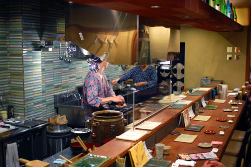 Budget around Y6000-7000 for dinner with drinks, and bring cash; they don't take credit cards. There's no English menu, but there are a few set menus for easier ordering. It's a good idea to call for reservations as there are only fourteen seats and they sometimes host sake events here. And print out a map to bring along - it's hard to find!