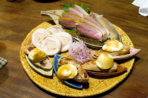 Souten is just as serious about their sake as they are about their birds - they serve several varieties of their own custom-label Kozaemon sake from Gifu, plus another two dozen well-selected brands from small breweries around the country. Also from Kozaemon is a very drinkable yuzushu, a limoncello-like citrus liqueur, made with a base of junmaishu sake and served on the rocks. There's even special sake-brewery water served from big isshobin bottles.