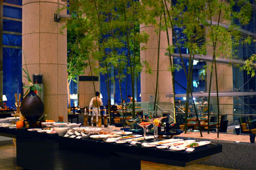 Lunch and dinner buffets of modern Italian cuisine in a beautiful open-atrium dining space. The weekday lunch buffet is Y2900; weekend lunch is Y4200, dinner is Y5000, and the weekend dessert buffet (3-5pm) is Y2700. They also offer a wine buffet to go with dinner.