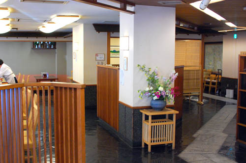 Sarashina soba noodles, the specialty here, are made only from the refined core of the buckwheat kernel. Noodles here are served with two dipping sauces - sweet and spicy - which you can combine as you wish. The noodles are good, if a bit bland, but the tempura is only average. Side dishes like yakitori and smoked duck are served a la carte, and there's a Y3500 full-course menu with tempura and several other items.