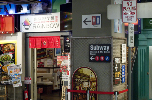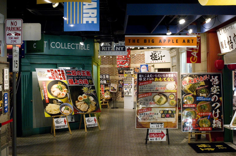 Seven famous ramen shops are gathered together in a NY Times Square-themed food court.