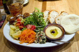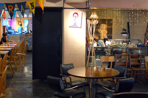 There's also a big selection of "world wines" (Tunisia, Israel and Turkey are represented) and world beers. The space itself has a comfortably gritty post-industrial-chic look to it - lots of painted concrete and mismatched furnishings. Free WiFi access is provided if you want to check your email - ask for the password.