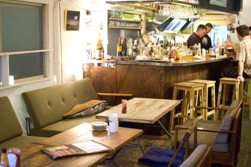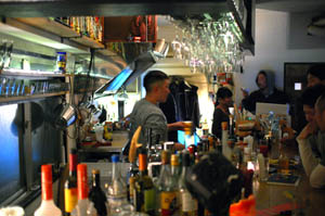 The layout comprises a small counter bar, a comfortable sofa area up front, and a bit of outdoor seating on the front terrace. The soundtrack is dubstep and reggae, and the atmosphere is generally laid back (although sometimes the small space can get crowded). Kids and dogs are welcome.